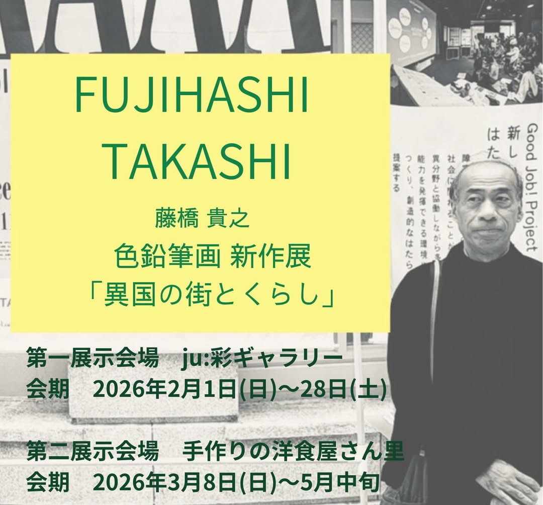 当事業でご協力いただいてます藤橋貴之さんの展覧会が、藤橋さんの所属する社会福祉法人 新明塾 ju:彩ギャラリーの主催にて行われます。
